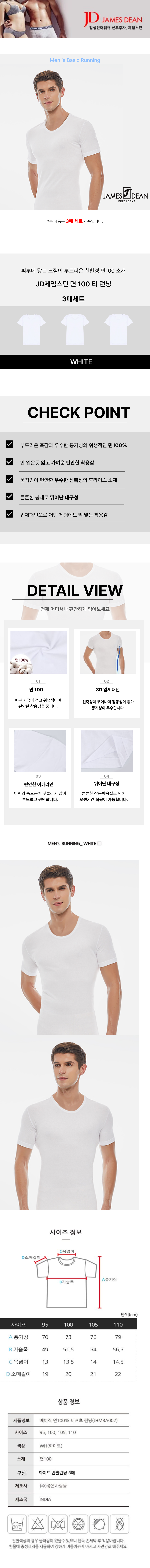 제임스딘 백색 반팔런닝 3P