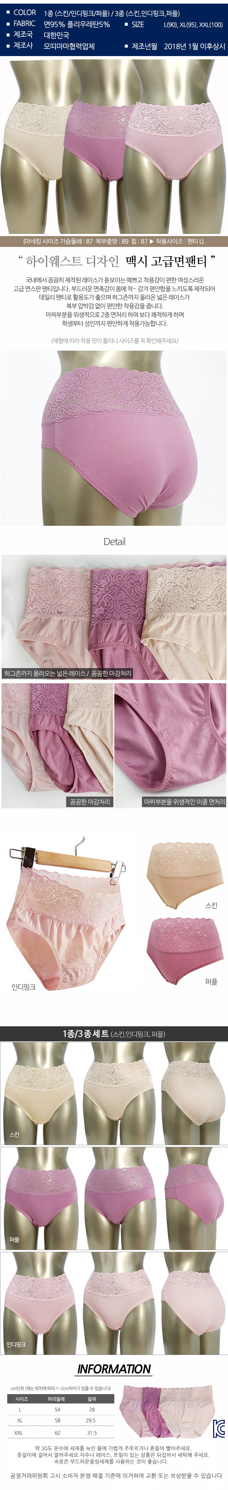 모띠마마 하이웨스트 팬티 3P